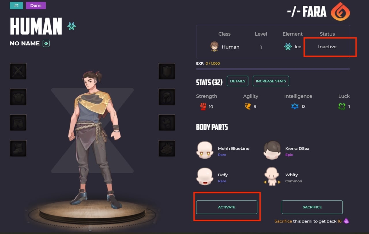 The newly summoned Demi Hero will start with Level 1 and have its Race and Stats fully displayed. However, they will remain in an inactive condition until players activate them.