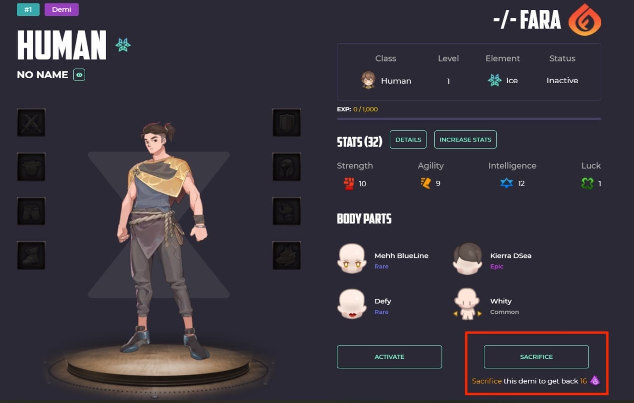In case users are not satisfied with the newly summoned Demi Hero, they can “sacrifice” that demi hero to gain back 50% of the used Soul Stones (meaning 18 Soul Stones will be refunded).